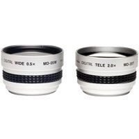The two-lens set from Kenko is made up of the MD-05W, a 0.5x wide-angle lens and MD-20T, a 2.0x telephoto lens. The two lenses have a 37 mm mount thread and also contain step rings for 30.5 mm and 30 mm to mount on many Mini DV camcorders from Canon and Sony and other manufacturers. These lenses have silver finished aluminum barrels and high quality glass optics that are coated to guard against reflections and flare.